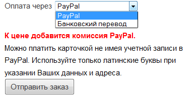 По умолчанию, мы поставили оплату через карточку.